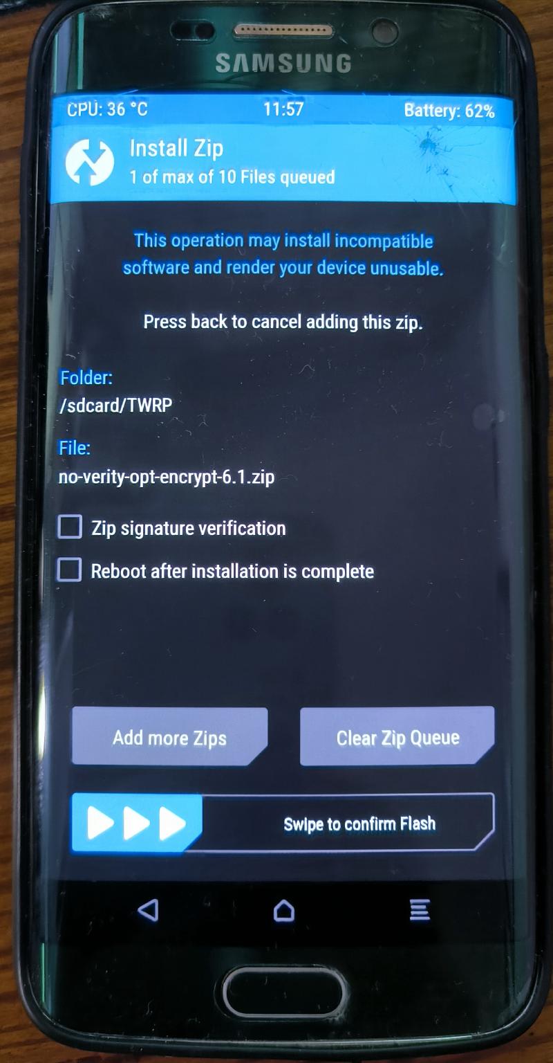 这个步骤比较坑,TWRP 官网上的包均无法使用,要么第一屏无限重启,要么报错“Recovery Is Not Seandroid Enforcing”,也因此学会了如何救砖。最后在 XDA Forums 上找到修改后的 TWRP-3.2.1 成功刷入。